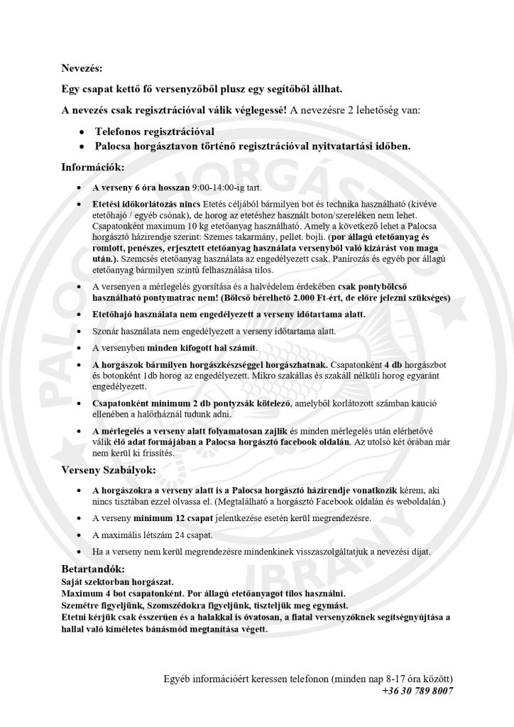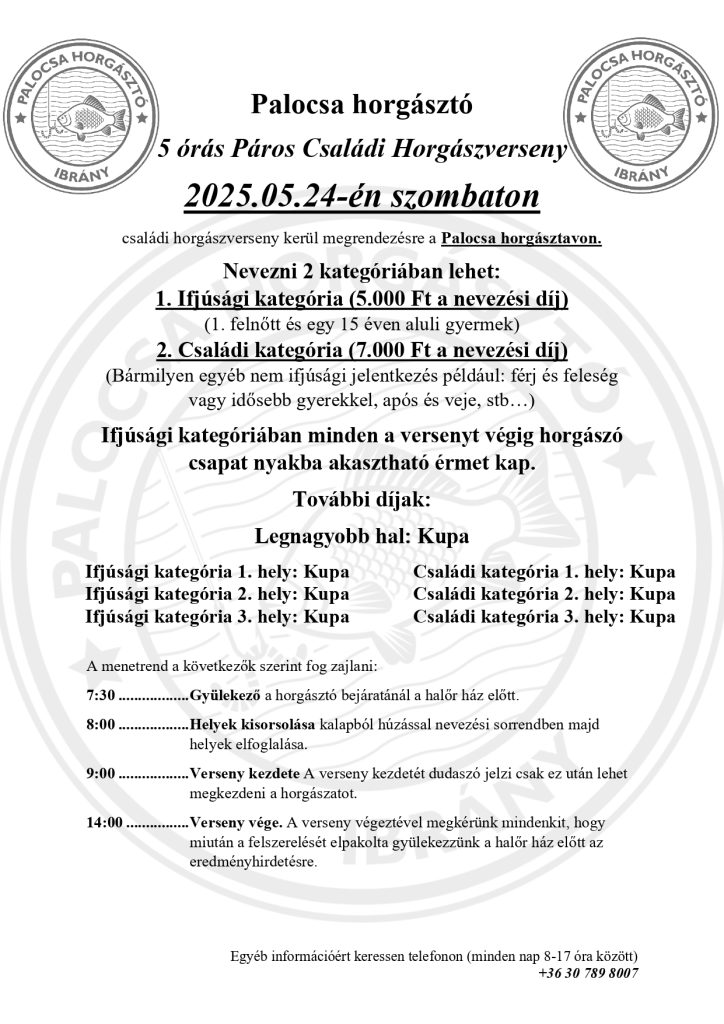 Családi páros - 5 órás horgászverseny | 2025.05.24.